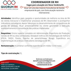 Requisitos: Ensino superior completo em Administração, Engenharia de Produção,