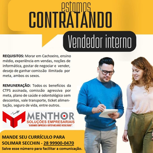 médio, experiência em vendas, noções de